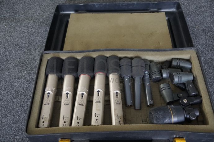 - Kit com diversos microfones da marca GLOBAL, com caixas;