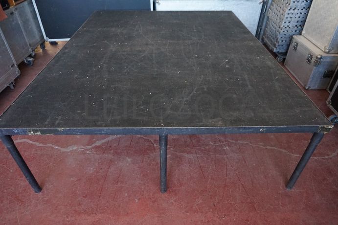 - 3 Estrados em ferro desmontáveis, de cor preta e em madeira com alcatifa;