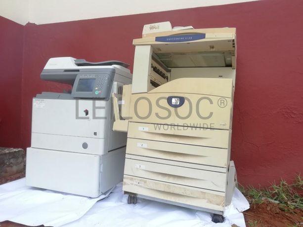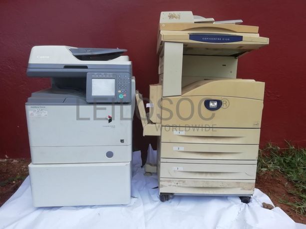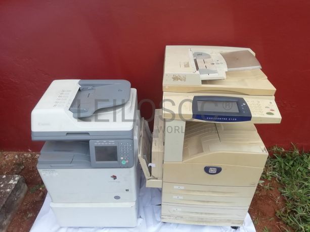 Duas máquinas fotocopiadoras, uma marca canon, modelo 1740i e uma marca XEROX, modelo C120