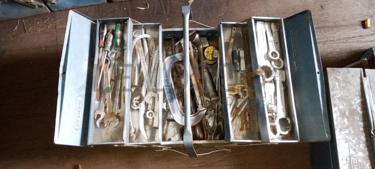 3 malas metálicas de ferramentas: mala 1( 1 Lima, 2 chaves 24mm boca loneta, 1 chave francesa, 1 chave 30mm, 1 chave 32mm, 1 grampo de 8", 1 kirikiri, 1 flogging power, 1 alicate de pressão, 1 Allan Key)
