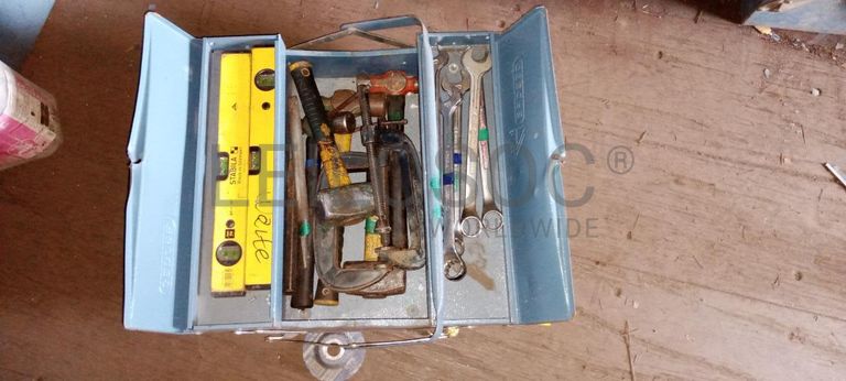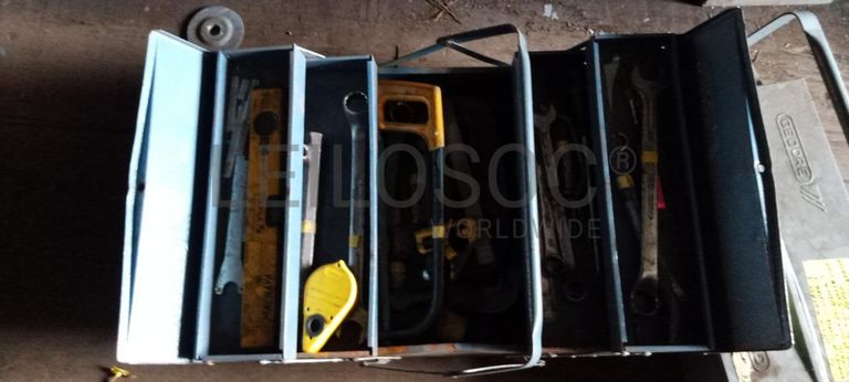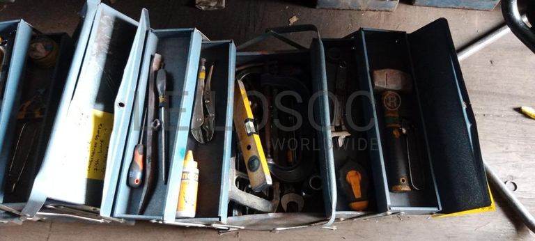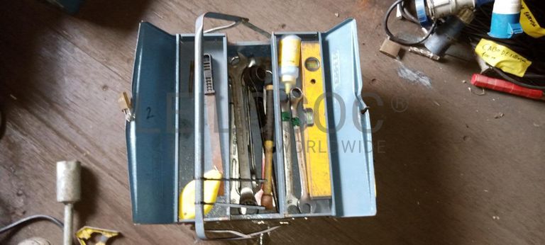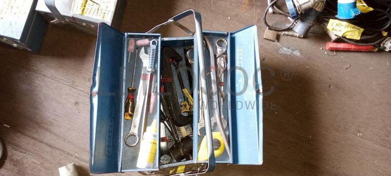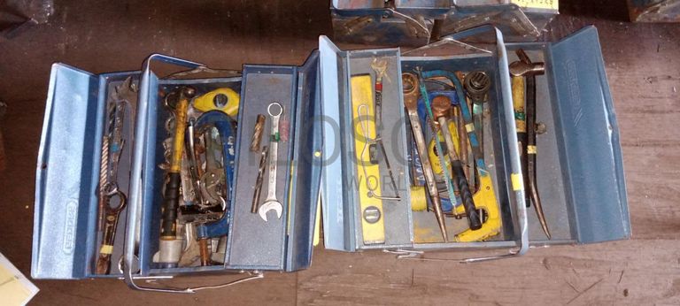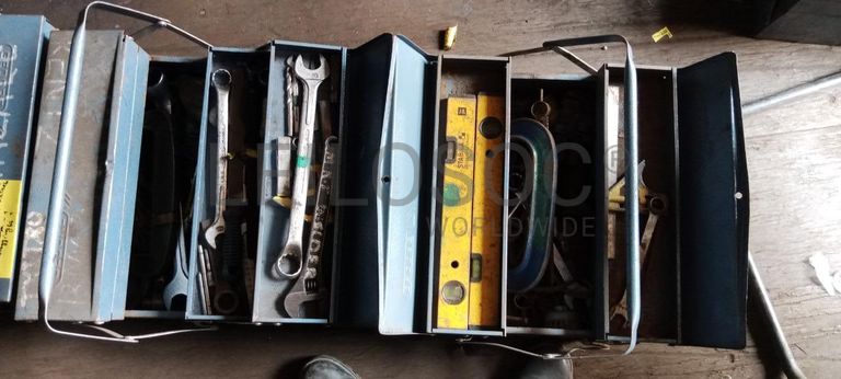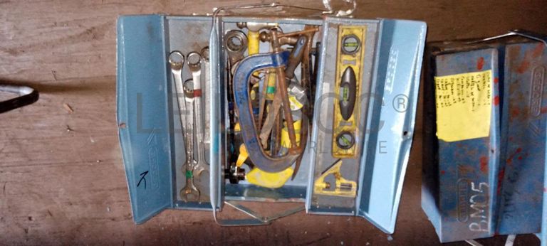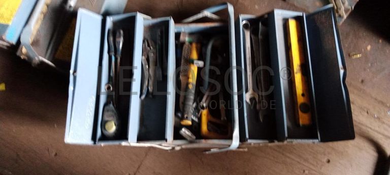 Mala 3 ( 2 nível, 1 esquadro, 1 grampo, 1 compasso, 1 martelo, 1 chave bobójane, 1 Wire scrash, 1 chave 25, 1 fins Line. + 3 Malas metálicas de ferramentas: mala 1( 2 martelos, 1 chave francesa, 1 chake line, 1 kirikiri 19/24, 1 kirikiri 24/30, 1 grampo 8", 1 nível, 1 compasso, 1 folha de serra, 1 peach, 2 chaves 27, 2 chaves 30, 1 chave 24, 1 chave 19, 1 chave 17, 2 chaves 14, chaves de fenda).
