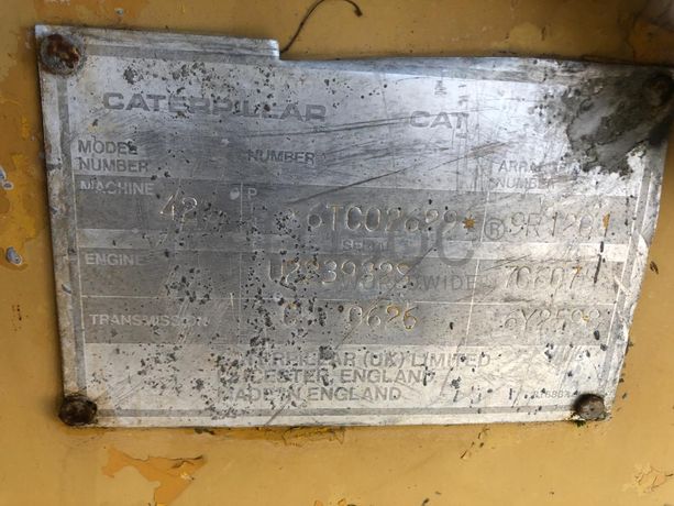 Retroescavadora CAT 428-II 4x4, com 8.685h, caixa manual, motor CAT 4236, balde traseiro de 60cm largura, nº série 6TC02629. NOTA: acresce IVA.