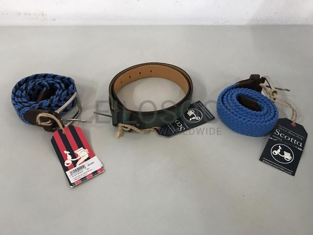 Cerca de 17 cintos, de tamanhos, modelos e cores diversas (adulto).