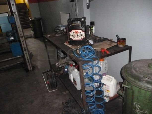 3 Secretárias, cadeira, 3 cadeiras com rodas, 2 secretárias de computador, ficheiro de 2 gavetas, 2 estantes, CPU, monitor “HP”, impressora “HP LASERJET P1005”, impressora “HP DESKJET 1050”, multifunções “HP OFFICEJET 4315”, armário, 4 caixas com ferramentas + Monte cargas auto “MECÂNICA INDUSTRIAL DE COIMBRA” + Grua para motores “FAV 1475” + Compressor “RUBETE 300TP” + Macaco auto, bancada de lavar peças, bancada com torno e bigorna, 2 mesas de apoio, bancada de testes, prensa “MECÂNICA INDUSTRIAL DE COIMBRA”, 2 maçaricos, aparelho de soldar “ESAB POWER COMPACT 200”, lote de ferramentas manuais, lote de peças auto usadas, 10 motores usados, 2 linhas de escape, diversas preguiças + 10 Módulos de estante em dexion + lote de peças auto usadas/novas + Máquina de furar de coluna “NEW PROGRESS” + esmeril + Bidão aberto com óleo “5W30”, depósito para óleo usado, bomba de tirar óleo dos motores, 3 carros de apoio para ferramentas, bancada com 2 tornos, aparelho de soldar, diversas preguiças, aspirador, 3 estrados de mecânico, 2 macacos auto, macaco para caixas de velocidades, barra de suporte para trabalhos no motor, 3 bancadas de apoio, booster, aparelho de carregar baterias, 3 baterias auto, diversas ferramentas manuais + Carro com ferramentas + Carro com ferramentas + Máquina de lavar à pressão “TOMIX” + Elevador de 2 colunas “OMCN 199/C” 2.500 kg + Elevador de 4 colunas “RAVAGLIOLI KP143” + Mesa, 5 bancos, banco corrido, 2 poltronas, aquecedor a gás, micro-ondas “SELECLINE”, máquina de café “DELTA”, esquentador “VULCANO” + Armário vestiário de 3 portas, secretária, 2 cadeiras + Cabine de pintura, esmeril, grua para motores, esticador de chassis, diversas preguiças, lote de peças de chaparia usadas, 2 bancadas de apoio, diversas ferramentas manuais, macaco auto, lote de peças usadas auto