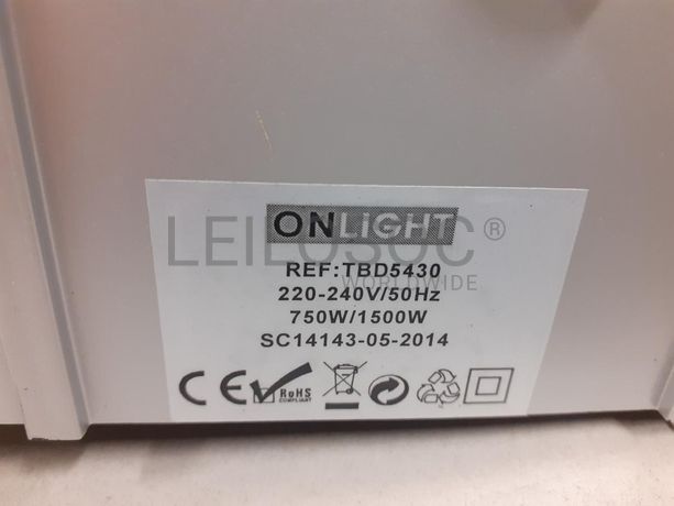 1 Aquecedor cerâmico, marca On Light, refª TBD5430. NOTA: acresce IVA.