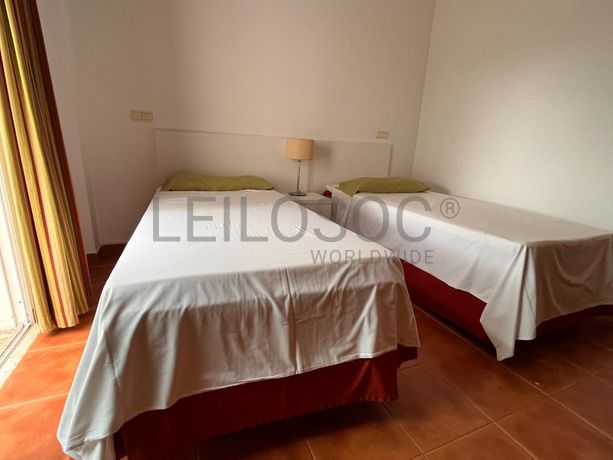 ·Mobiliário de Quarto - 2 Sommiers, 1 cabeceira, 2 colchões individuais, mesa de cabeceira, 1 candeeiro pequeno, roupa de cama, varão com cortinados, equipamento ar condicionado, espelho, banco de apoio, candeeiro de aplique, tábua de engomar, 2 cadeiras, cofre.