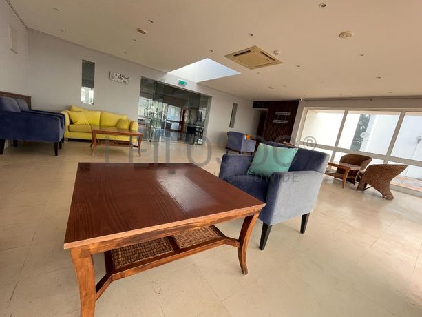 ·Interior - 1 Sofá de 2 lugares amarelo, 2 sofás individuais azul escuro, 5 cadeirões de verga, 4 mesas de sala pequenas, 4 bancos altos de bar, diversas decorações de parede, 3 vasos de porcelana, 11 mesas com tampa de vidro e pés de metal, 35 cadeiras com pés de metal.