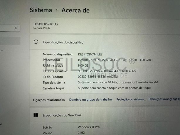 Surface Pro 6 i5-8300- 8GB- 128M2 - s/n: 003691283553. Artigo testado e 100% funcional. Nota: acresce IVA. (E53)