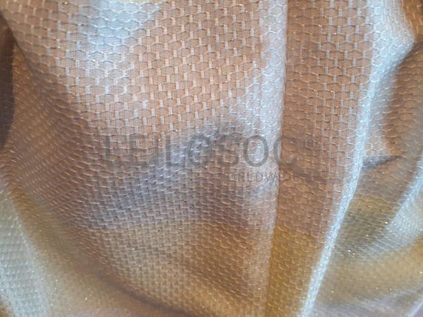 Vestido de cerimónia piquet, trabalhado com flores, com brilho, cor amarelo e bege às riscas, tamanho 36, da marca CASTING.