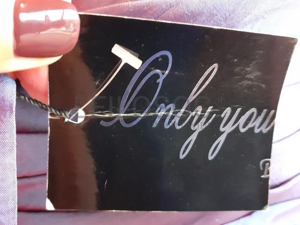 Vestido de cerimónia em cetim, em cai cai, com apanhado na cintura e pedraria, cor lilás, tamanho 40, da marca ONLY YOU.