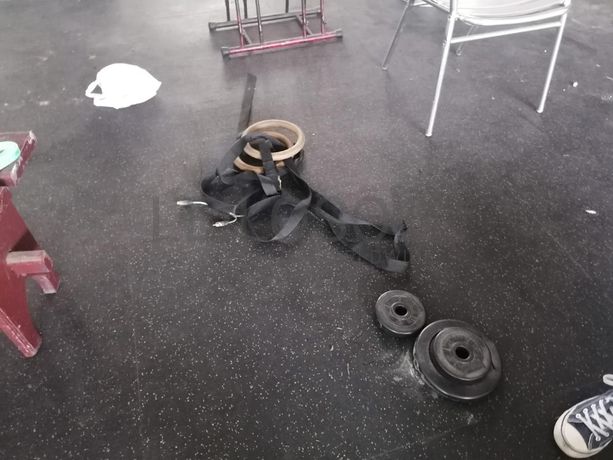 Equipamento de ginásio, 38 discos olímpicos (vários tamanhos).