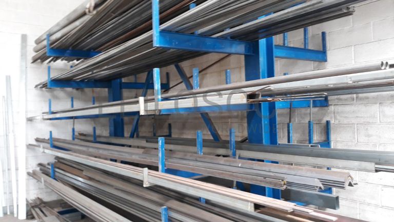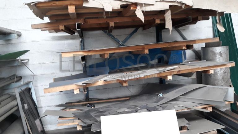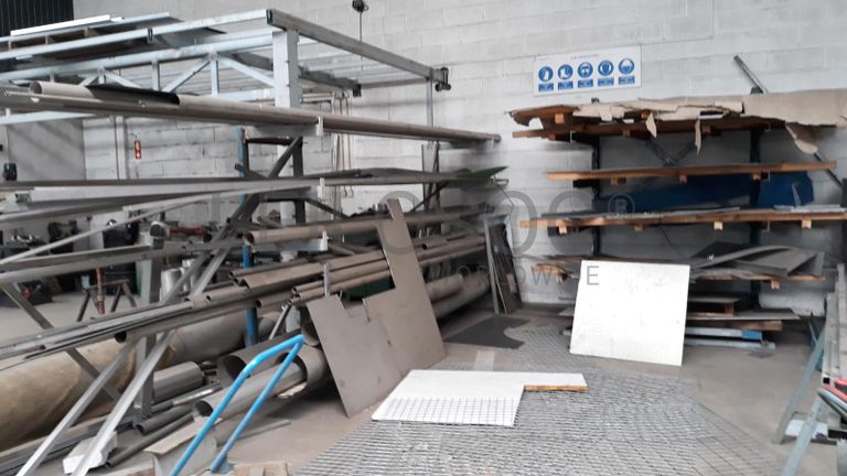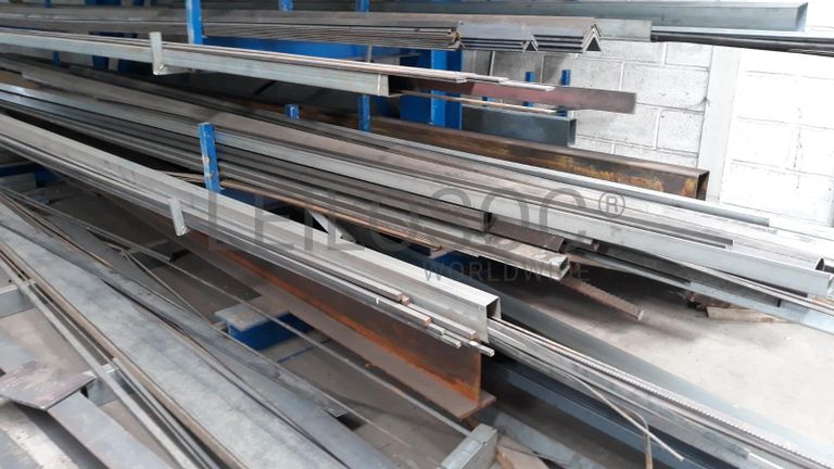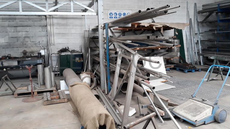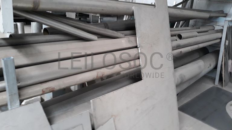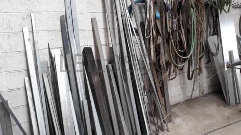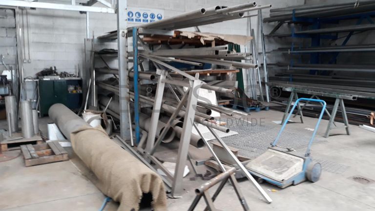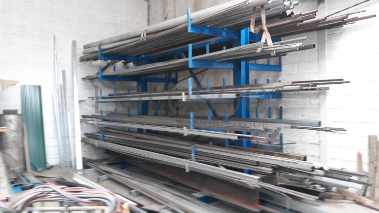 Lote composto por vários tubos e chapa em inox, estante, tubo em ferro com parede grossa de 160mm x 6m, tubo preto com parede reforçada 5mm x 12m.