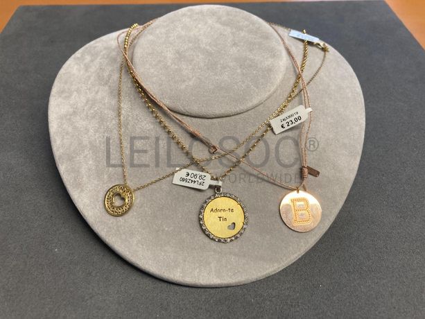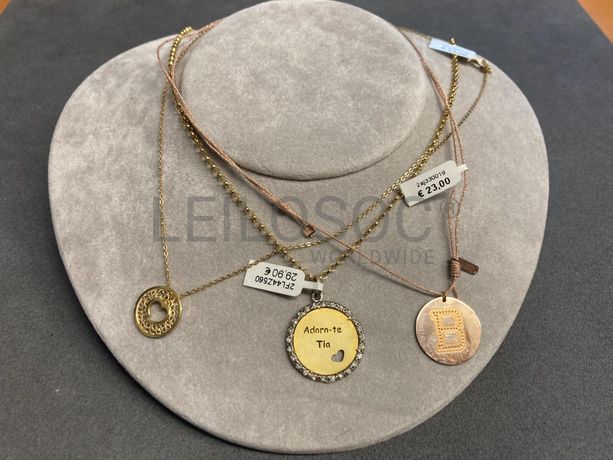 3 Colares em prata e outros materiais, dourados e rosa, alguns com brilhantes e 1 deles em filigrana.
