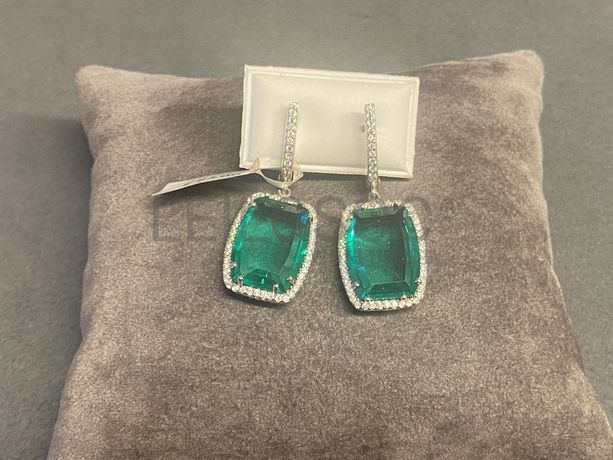 Par de brincos, verdes, com rebordo com brilhantes.