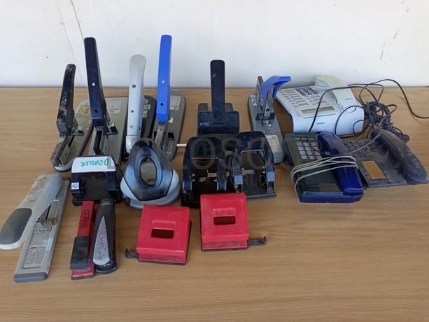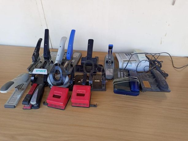 8 agrafadores, 7 furadeiras e 3 telefones analógicos...