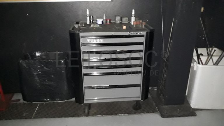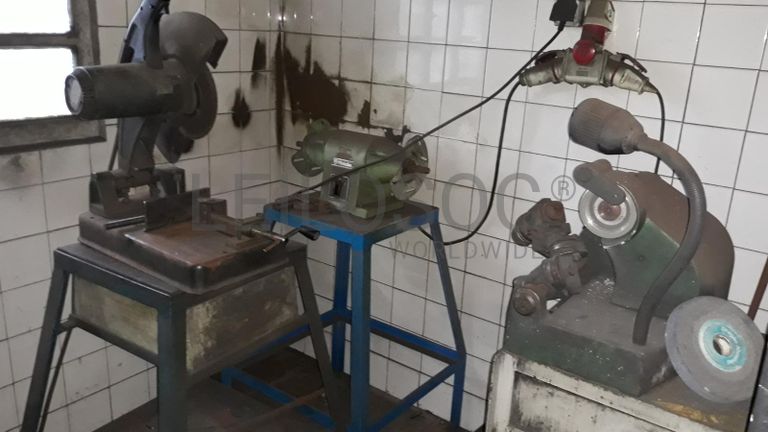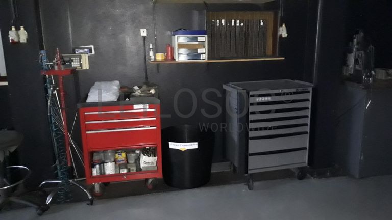 Lote composto por ferramentas técnicas, aparelhos de medição, mesas magnéticas, carrinhos de ferramentas, máquinas hidráulicas e de afinação, mobiliário de escritório, computadores, existências de matérias primas.