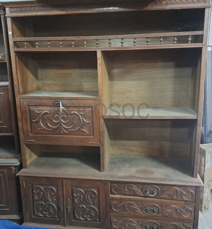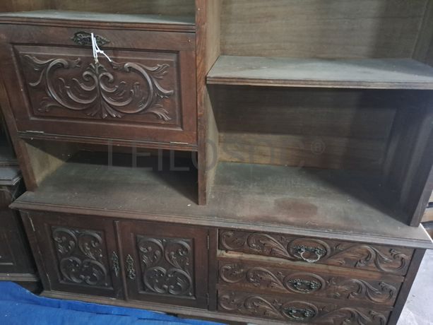 Móvel em madeira, com 3 gavetas, com 3 portas, para restauro.