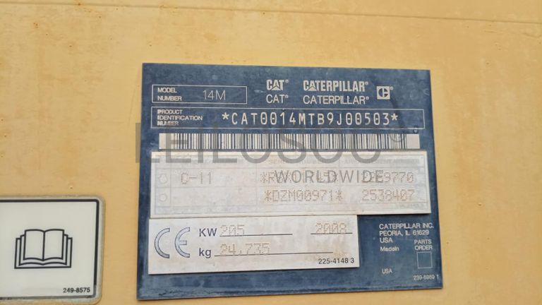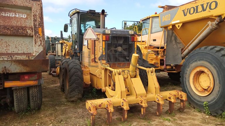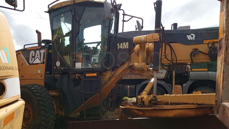 Niveladora de marca Caterpillar, modelo 14M, série nº B9J00503, com cerca de 11064 horas de trabalho. Estado: Avariado ( com danos no motor)