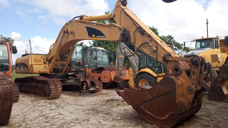 Escavadeira giratória de marca Caterpillar, modelo 330 CLN, série nº CGZ00545, com cerca de 18285 horas de trabalho.