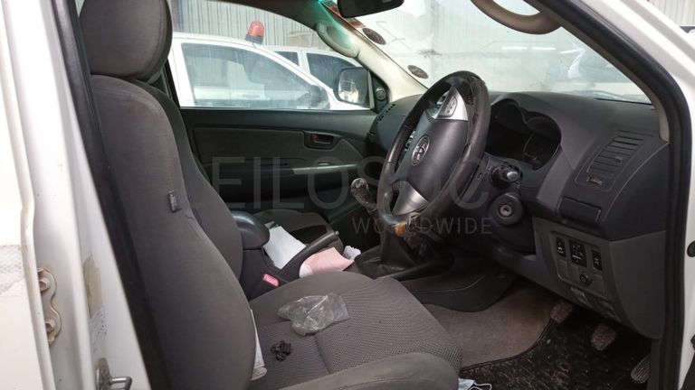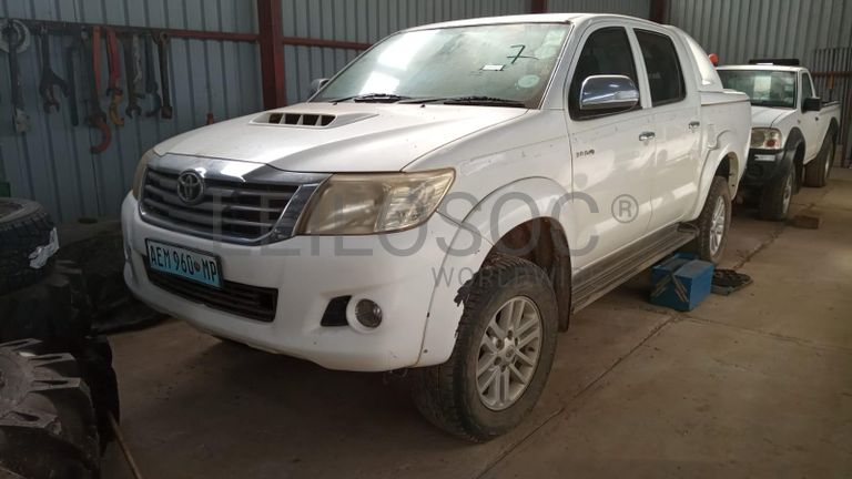 Viatura de marca Toyota, modelo HILUX 4x4 3.0D4D, cabine dupla, matrícula AEM-960-MP, série nº AHTFZ29G509068112, com cerca de 136750 km.