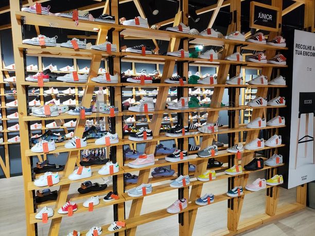 - Lote de existências composto por cerca de: 213 pares de meias, 21 chapéus, gorros, 16 bolsas de cintura, 8 mochilas, 78 peças de vestuário, 1.549 pares de sapatilhas "NIKE, REEBOK, PUMA, CONVERSE, NEW BALANCE, SAUCONY, LE COQ SPORTIF, ON, ADIDAS, VANS, SANJO, RALPH LAUREN, FRED PERRY, ASICS, LACOSTE, FILA, KARHU", 107 pares de chinelos Havaianas, 18 pares de chinelos variados, 11 pares de “CROCS”, 25 pares de chinelos "TEVA", 12 pares de palmilhas, 57 carteiras “SECRID”, 29 carteiras de tecido “HERSCHEL”, 2 caixas de guardar sapatilhas, atacadores, produtos "CREP PROTECT".