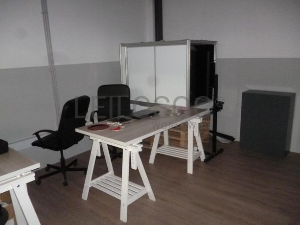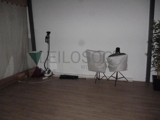 2 Luzes de fotógrafo, 3 tripés, 4 expositores de pendurados, máquina de passar a ferro “PRINCESS”, 4 mesas elevatórias, 2 armários com 6 gavetas, estante com 8 espaços, 3 cadeiras com rodas, caixa de luz “ALPHA SHOT XL ORBITVU”, computador portátil “INSYS”, máquina fotográfica “CANON EOS 700D”, suporte móvel para fotografia, máquina fotográfica “LUMIX S1H”