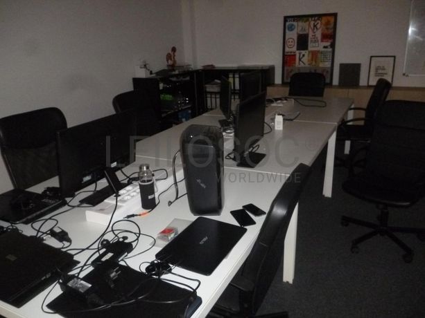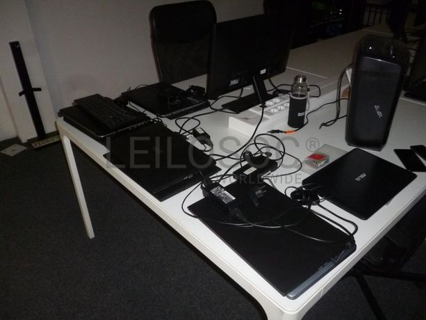 2 Cabides, 2 mesas elevatórias, 15 armários com 2 portas, armário de 1 porta, 4 ilhas de 6 lugares, 24 cadeiras com rodas, 4 quadros didáticos, 10 monitores TFT, máquina de destruir papel, 2 armários com portas de correr, 9 computadores portáteis.