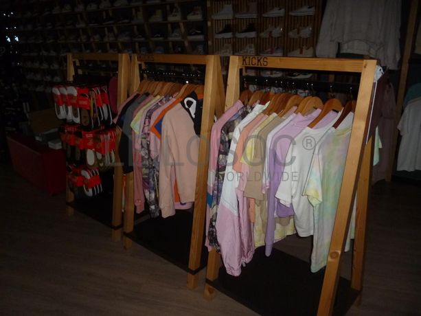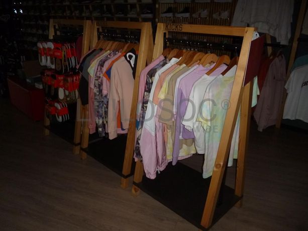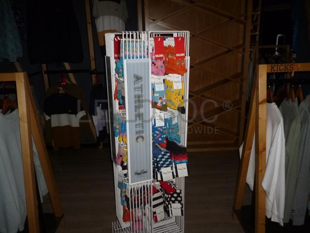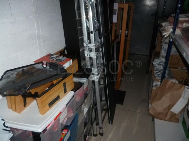 - Monitor TFT “LG”, POS com caixa para dinheiro, 2 impressoras de talões, 2 móveis de apoio, 7 expositores de pendurados, 2 escadotes, 14 módulos de estante em dexion, aspirador, máquina de passar a ferro, mini frigorífico, micro-ondas, mini aparelhagem, impressora, 4 estruturas luminosas para publicidade, 6 pufs, tablet “SAMSUNG”, cadeira com rodas, holofotes LED, cabides, formas para sapatos de homem, mulher e criança.