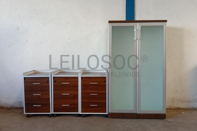 Um armário e três blocos rodados.