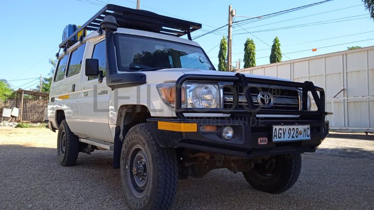 Uma viatura marca Toyota, modelo LandCruiser, ano de fabrico 2017, com cerca de 31633km, caixa manual, operacional combustível diesel, pneus marca Dunlop, matrícula AGY-928-MC