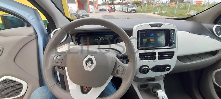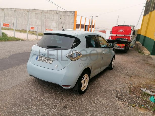 Veículo ligeiro de passageiros da marca "RENAULT", modelo "ZOE", cor azul, elétrico, 5 lugares, 5 portas, vidros elétricos á frente, caixa de mudanças automática, cabo de carregamento, com 113.190km, matrícula 23-VQ-80 do ano 2015.