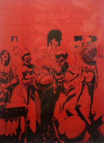 Técnica: Tinta da China e Marcador Sobre Cartolina Vermelha