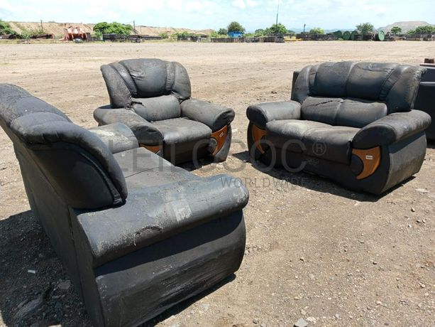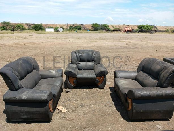 Um jogo de sofás, um de três lugares e um de dois lugares.