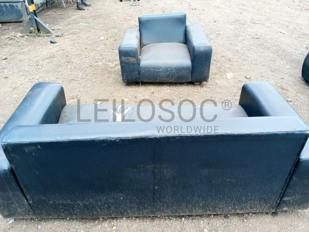 Um jogo de sofás, um de três lugares e um de dois lugares.