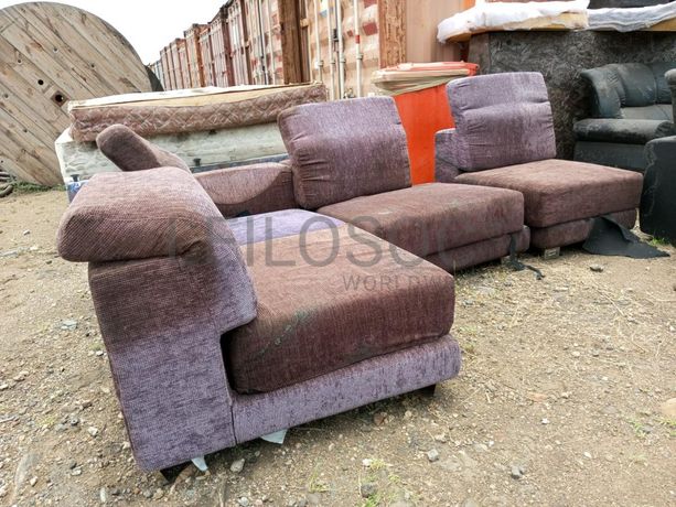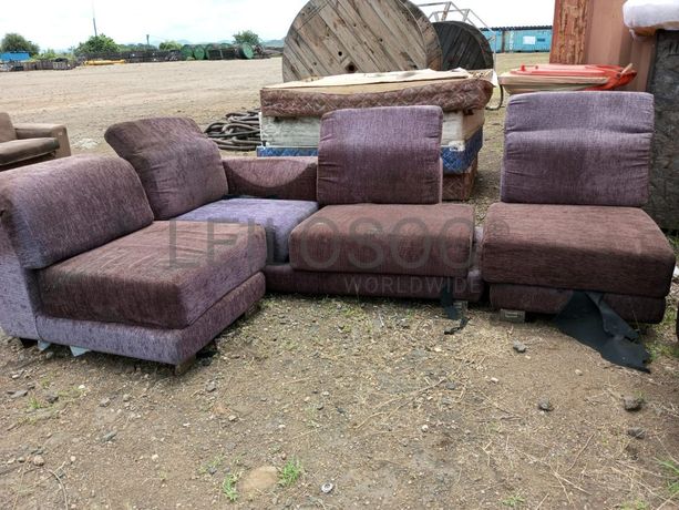 Três sofás, sendo um de dois lugares e dois de um lugar.