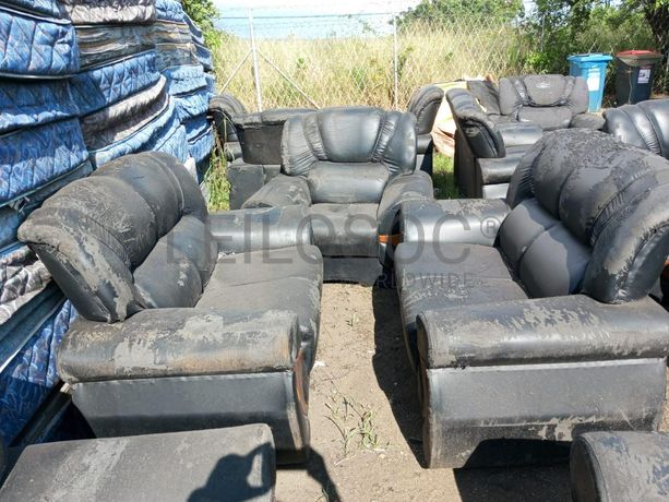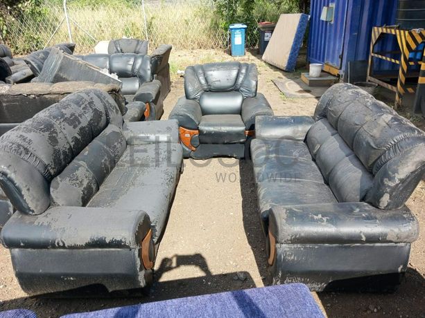 Três sofás, dois de dois lugares e um de um lugar.