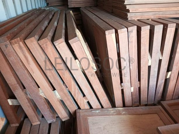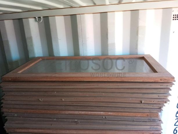 Quarenta e nove portas de madeira maciça com chapas de contraplacado.