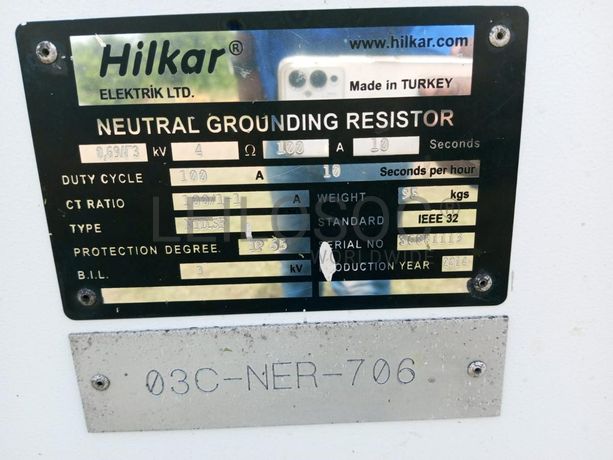 Onze neutral grouding resistor type NTD.SF SN 36831113 ano 2014
