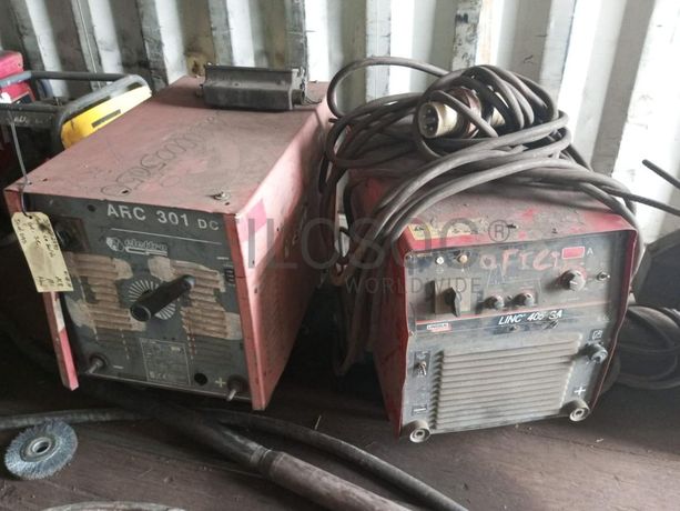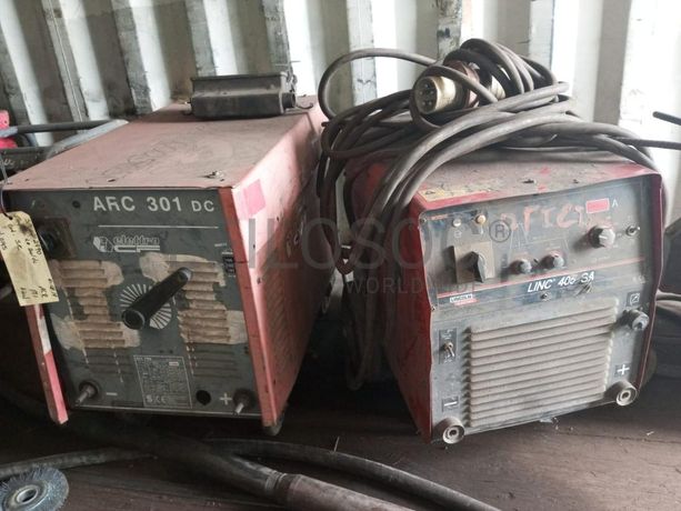 Duas máquinas de soldar uma de marca Lincoln electric linc 405 SA SN: P1100402491, uma de marca ELETRO ARC 301 DC.