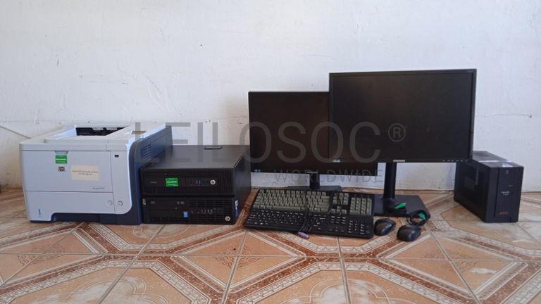 Dois PCs marca HP, dois monitores marca Samsung, uma impressora marca HP, um Ups marca APC, dois teclados e dois mouse