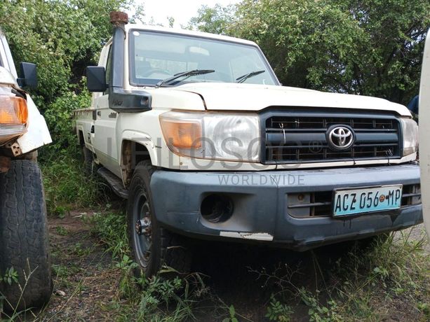 Uma viatura marca Toyota, modelo Land Cruiser, matrícula ACZ-056-MP, ano 2013, com cerca de 207085km, Cilindrada 4164, 4 Cilindros, 4X4 off road, operacional