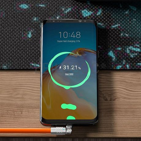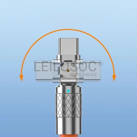 1 * Cabo USB tipo-C grosso, em silicone, com ponta metálica rotativa e led, de 120W.