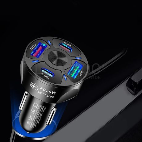1 * Carregador de isqueiro, para carro, com duas portas rápidas USB 3.0 QC e 3.1A e duas portas tipo-C PD 20W.