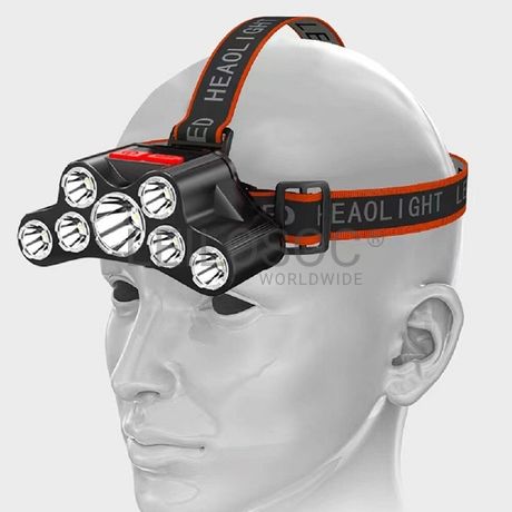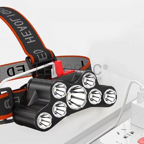 1 * Lanterna com cinta/fivela para uso na cabeça, recarregável, com cabo USB incluído.
