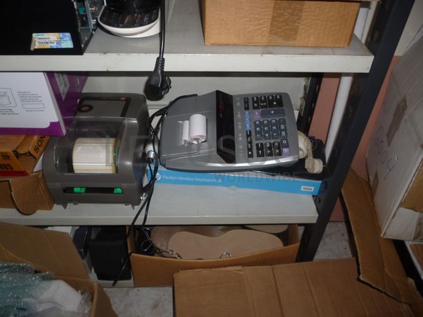 2 Secretárias, 3 cadeiras com rodas, mesa redonda, 2 cadeiras, 2 estantes em dexion, computador com monitor teclado e rato, impressora “HP LASERJET 4200”, UPS “POWER WALKER”, máquina de calcular “CANON”