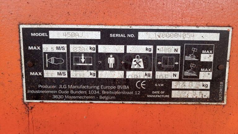 Plataforma elevatória marca JLG 16M, modelo 450AJ SII M/F3M2011, chassi 1300004054, com cerca de 4646h