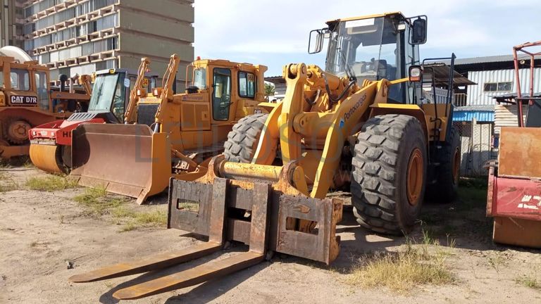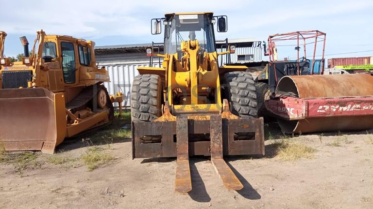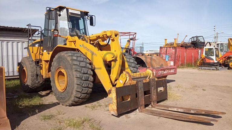 Caterpillar, modelo CAT966G, chassi 9RS00723, com cerca de 17851h, com balde e dois garfos