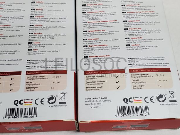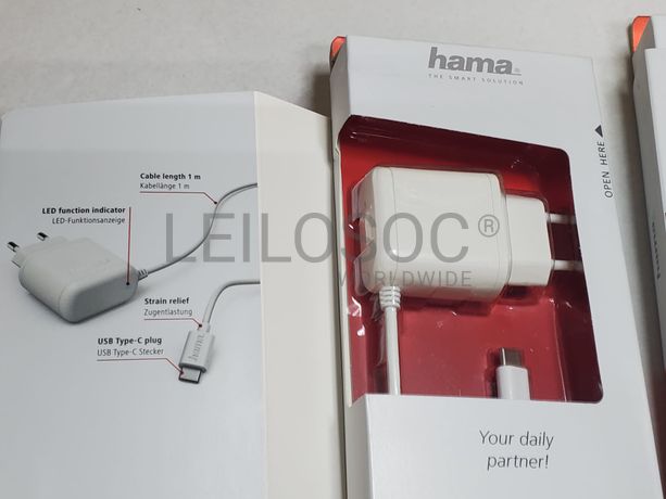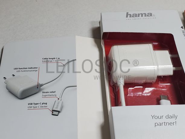 Conjunto de dois carregadores, 1* carregador de parede + 1* Carregador de isqueiro, para telemóvel Samsung, Huawei, Xiaomi ou qualquer equipamento com USB C, com porta Type-C, da marca alemã HAMA.