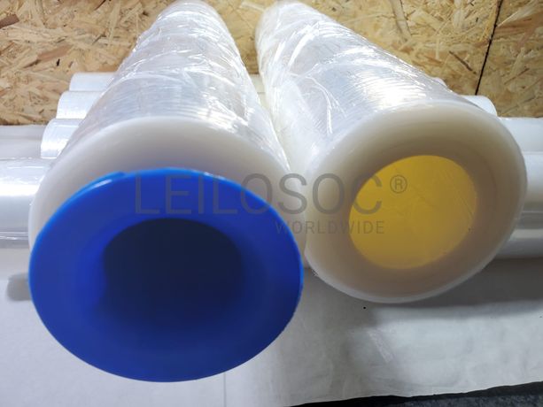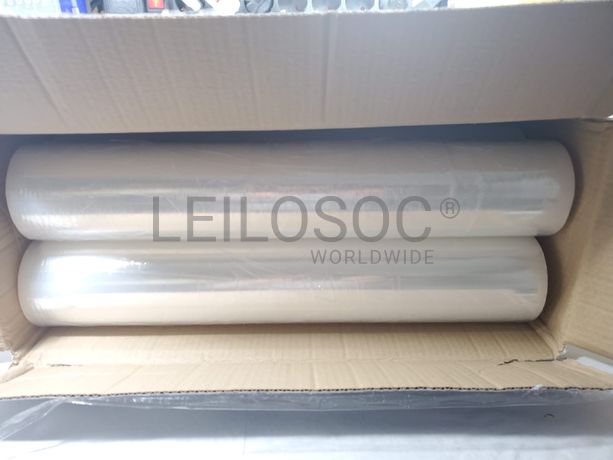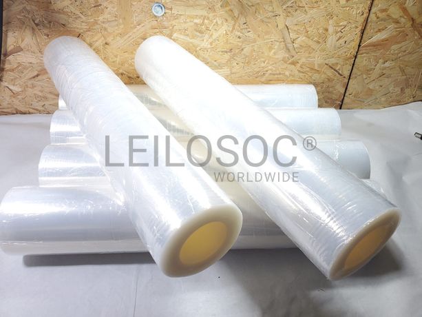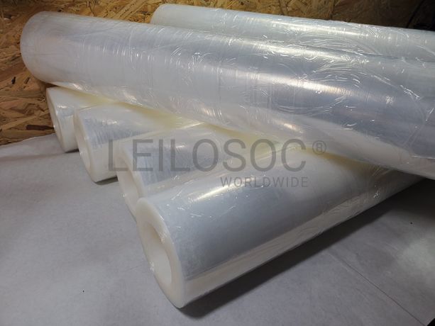 Caixa com 6 rolos de Filme / Celofane coreless, estirável / extensível manual, transparente, com 500mm de largura, 23 mícrones (23my), com 2KG sem mandril (2kg de plástico) e conjunto de desenroladores (2 peças).