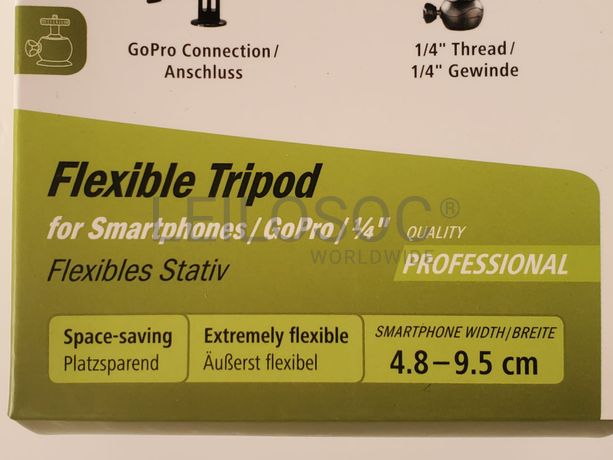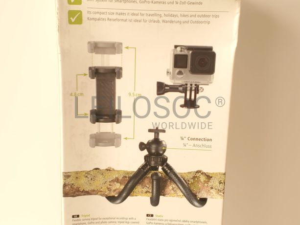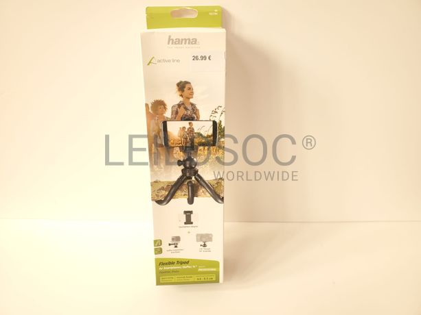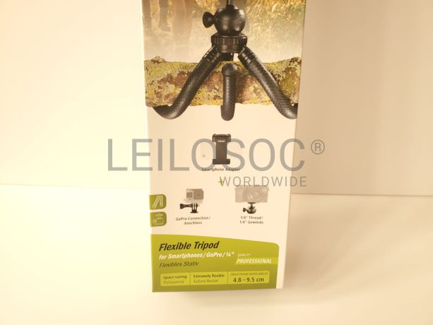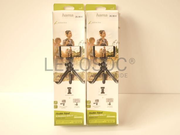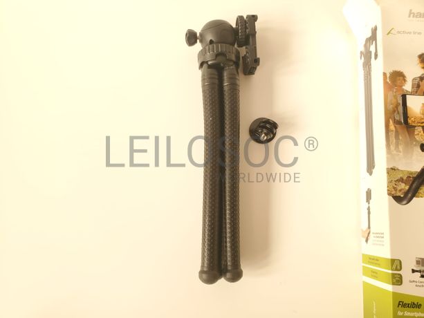 Conjunto de dois tripés flexíveis, da marca Hama , para smartphone, câmera GoPro ou outros equipamentos, com 3 adaptadores separadamente, de 27cm de altura e corpo reforçado, com borracha de alta qualidade.
